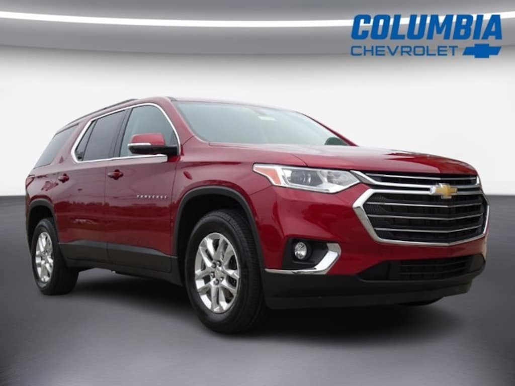 Columbia Chevrolet is pumped up to offer this gorgeous-looking 2020 Chevrolet Traverse LT in Cajun Red Tintcoat Beautifully equipped with Convenience & Driver Confidence Package (4.2" Multi-Color Enhanced Driver Instrument Display, Heated Driver & Front Passenger Seats, Lane Change Alert w/Side Blind Zone Alert, Radio: Chevrolet Infotainment 3 Plus System, Rear Cross Traffic Alert, Rear Park Assist w/Audible Warning, Rear Power Liftgate, Remote Start, SiriusXM w/360L, and Universal Home Remote), Preferred Equipment Group 1LT, Chevrolet Certified Pre-Owned Certified, 3.49 Axle Ratio, 3rd row seats: split-bench, 4-Wheel Disc Brakes, 6 Speakers, 7-Passenger Seating (2-2-3 Seating Configuration), ABS brakes, Air Conditioning, Alloy wheels, AM/FM radio: SiriusXM, Apple CarPlay/Android Auto, Automatic temperature control, Brake assist, Bumpers: body-color, Compass, Cruise Control, Delay-off headlights, Driver door bin, Driver vanity mirror, Dual front impact airbags, Dual front side impact airbags, Electronic Stability Control, Emergency communication system: OnStar and Chevrolet connected services capable, Four wheel independent suspension, Front anti-roll bar, Front Bucket Seats, Front Center Armrest, Front dual zone A/C, Front fog lights, Front reading lights, Fully automatic headlights, Heated door mirrors, High-Intensity Discharge Headlights, Illuminated entry, Leather steering wheel, Low tire pressure warning, Occupant sensing airbag, Outside temperature display, Overhead airbag, Overhead console, Panic alarm, Passenger door bin, Passenger vanity mirror, Power door mirrors, Power driver seat, Power steering, Power windows, Premium Cloth Seat Trim, Radio data system, Radio: Chevrolet Infotainment System AM/FM Stereo, Rear air conditioning, Rear anti-roll bar, Rear reading lights, Rear window defroster, Rear window wiper, Remote keyless entry, Roof rack: rails only, Security system, SiriusXM Radio, Speed-sensing steering, Spoiler, Steering wheel mounted audio controls, Tachometer, Telescoping steering wheel, Tilt steering wheel, Traction control, Trip computer, Turn signal indicator mirrors, Variably intermittent wipers, Voltmeter, and Wheels: 18" Bright Silver Painted Aluminum! Chevrolet Certified Pre-Owned Details: