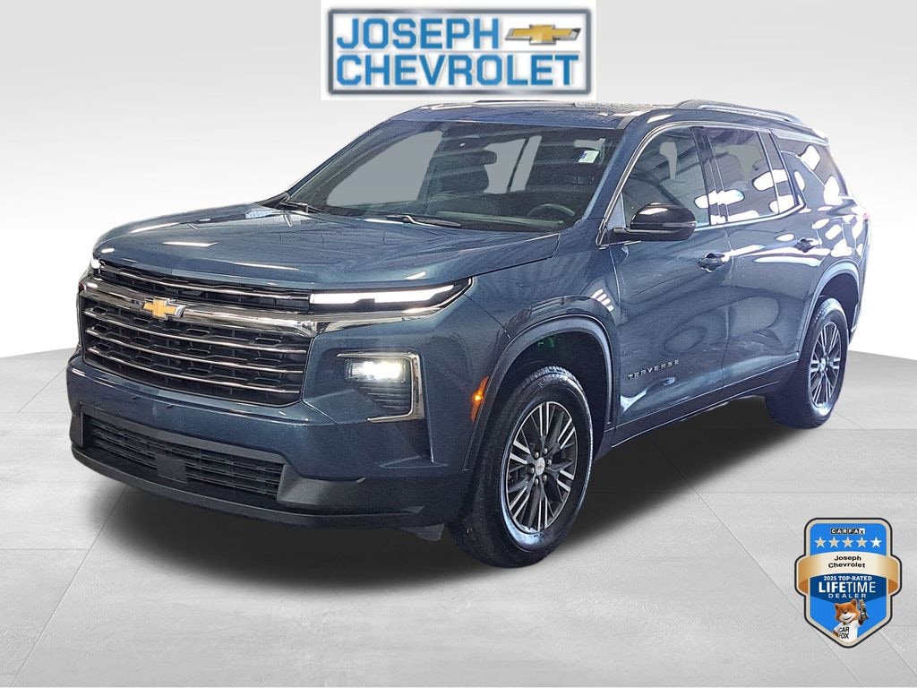 (Joseph Chevrolet) is proud to present you with another True Market Priced Pre-Owned Vehicle. This 2025 Chevrolet Traverse LT is loaded with the following Factory Options:Preferred Equipment Group 2LT, 3rd row seats: split-bench, 4-Way Manual Front Passenger Seat Adjuster, 4-Wheel Disc Brakes, 6 Speakers, 6-Speaker Audio System Feature, 8-Way Power Driver Seat Adjuster, ABS brakes, Air Conditioning, Alloy wheels, AM/FM radio: SiriusXM with 360L, Apple CarPlay/Android Auto, Auto High-beam Headlights, Automatic temperature control, Brake assist, Bumpers: body-color, Child-Seat-Sensing Airbag, Compass, Delay-off headlights, Driver door bin, Driver vanity mirror, Dual front impact airbags, Dual front side impact airbags, Electronic Stability Control, Emergency communication system: OnStar, Four wheel independent suspension, Front anti-roll bar, Front Bucket Seats, Front Center Armrest, Front dual zone A/C, Front reading lights, Fully automatic headlights, Heated door mirrors, Heated front seats, Heated steering wheel, Illuminated entry, Low tire pressure warning, Navigation System, Occupant sensing airbag, Outside temperature display, Overhead airbag, Overhead console, Panic alarm, Passenger door bin, Passenger vanity mirror, Power door mirrors, Power driver seat, Power Liftgate, Power steering, Power windows, Premium Cloth Seat Trim, Radio data system, Radio: : Audio System w/17.7" Diagonal Display, Rear air conditioning, Rear anti-roll bar, Rear reading lights, Rear window defroster, Rear window wiper, Remote keyless entry, Security system, SiriusXM with 360L Trial Subscription, Speed control, Speed-sensing steering, Spoiler, Steering wheel mounted audio controls, Tachometer, Telescoping steering wheel, Tilt steering wheel, Traction control, Trip computer, Turn signal indicator mirrors, Variably intermittent wipers, Voltmeter, and Wheels: 18" Grazen Metallic Machined-Face Aluminum. CARFAX One-Owner. Clean CARFAX.
