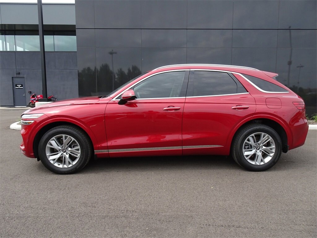 Certified. Mauna Red 2023 Genesis GV70 2.5T AWD 8-Speed Automatic with SHIFTRONIC 2.5L DOHC 9 Speakers, Android Auto & Apple CarPlay, Heated Front Bucket Seats, Navigation System, Power Liftgate.