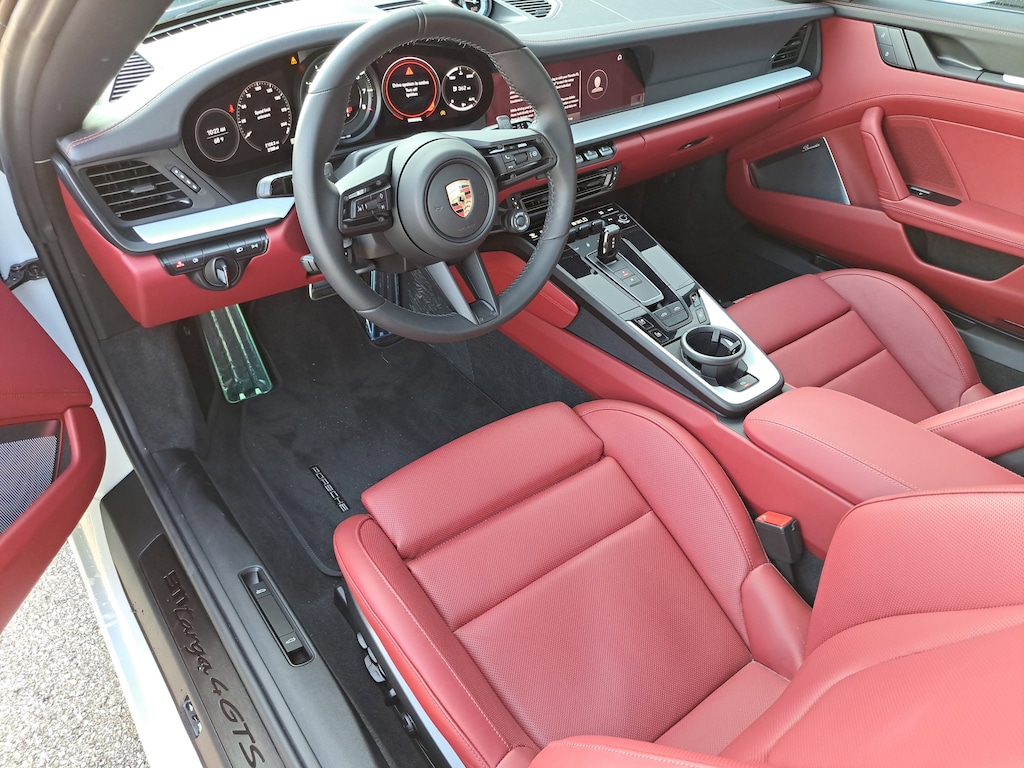 2023 Porsche 911 Targa 4 GTS. Porsche Approved Certified Pre-Owned. 2,086 Miles. Carrara White Exterior. Leather Interior in Black/Bordeaux Red. Premium Package. Burmester High-End Surround Sound System. Porsche Dynamic Chassis Control (PDCC). Front Axle Lift System. Rear Axle Steering. Adaptive Sport Seats Plus (18-way) with Memory Package. Porsche InnoDrive incl. Adaptive Cruise Control (ACC) and Active Lane Keep (ALK). SportDesign Side Skirts in Matte Black.