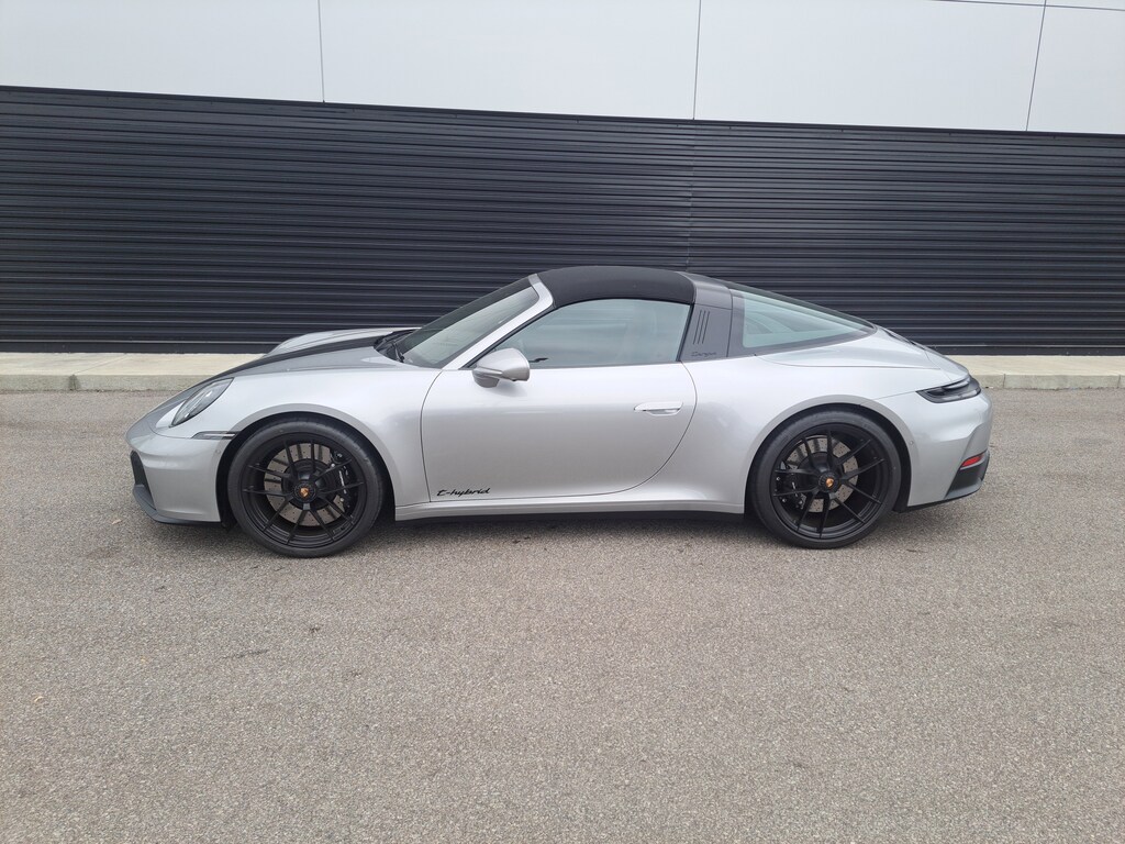 2025 Porsche 911 Targa 4 GTS. Porsche Approved Certified Pre-Owned, 1,193 Miles. GT Silver Metallic Exterior. Leather Interior in Black/Bordeaux Red. Premium Package. Sport Tailpipes in Titanium. Adaptive Sport Seats Plus (18-way) with Memory Package. Sport Seats Plus Backrest Shells in Leather with Painted Inlay. Ventilated Seats (Front). Exterior Mirror Base in Exterior Color. Rear Lid Grille Vertical Slat Inlays in Exterior Color. Brake Calipers in High Gloss Black. Wheels Painted in Satin Black. Seat Belts in Bordeaux Red. Porsche Crests on Headrests (Front). Heated GT Sport Steering Wheel in Leather with Trim in Matte Carbon Fiber and Trim in Black. Center Console Lid with Model Designation. Exclusive Design Taillights. Under Door Puddle Light Projectors.