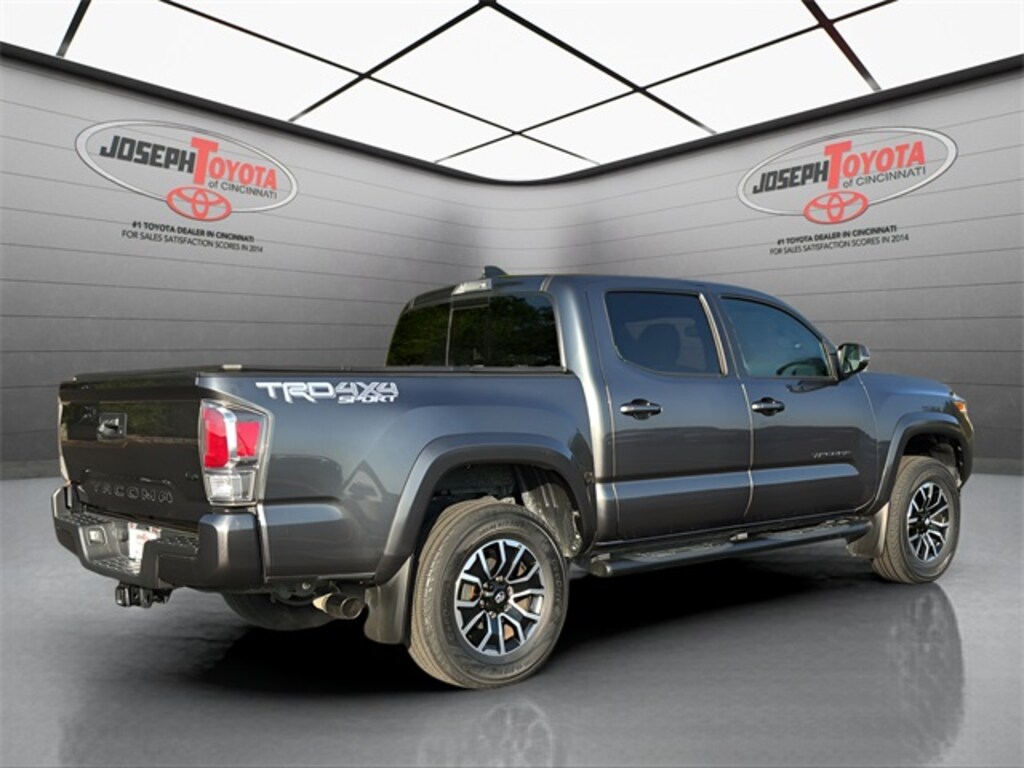 Certified. CARFAX One-Owner. Clean CARFAX. Magnetic Gray Metallic 2023 Toyota Tacoma TRD Sport V6 4WD 6-Speed Automatic 3.5L V6 PDI DOHC 24V LEV3-ULEV70 278hp 4WD, 120V/400W Deck Mounted AC Power, 5" Black Oval Tube Steps (TMS), ABS brakes, Active Cruise Control, Air Conditioning, All Weather Floor Liner & Door Sill Protector (TMS), Alloy wheels, Automatic temperature control, Blackout Emblem Overlays (TMS), Color-Keyed Overfenders, Door Edge Guard (TMS), Electronic Stability Control, Engine Immobilizer, Exhaust Tip (TMS), Front Door Smart Key System w/Push Button Start, Front dual zone A/C, Heated door mirrors, Illuminated entry, LED Daytime Running Lights & Fog Lights, Low tire pressure warning, Mudguards (TMS), Power Sliding Rear Window w/Privacy Glass, Remote keyless entry, Remote Tailgate Lock (TMS), Tailgate Emblem (TMS), Tonneau Cover, Traction control, TRD Sport Package.