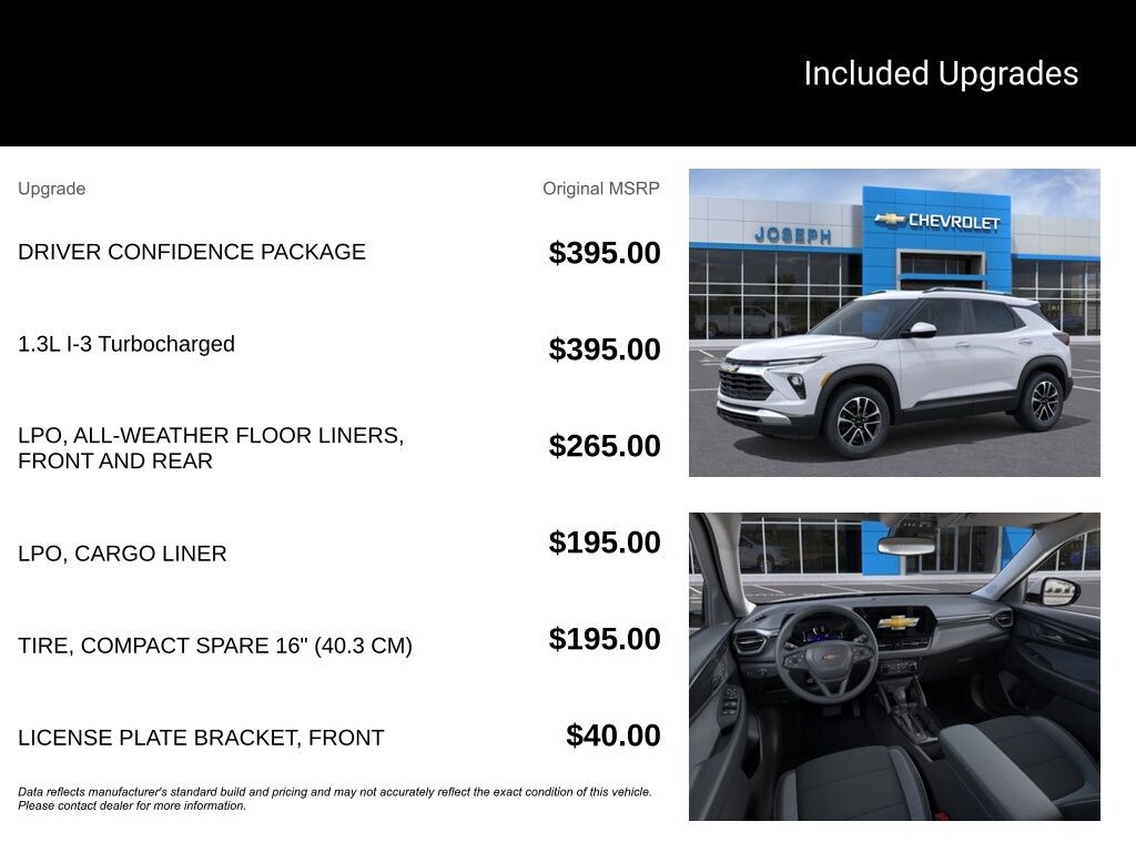 Summit White 2026 Chevrolet TrailBlazer LT FWD Dealer Discount of $2,247 off MSRP CVT 1.3L I3 Turbocharged DOHC 12V LEV3-SULEV30 137hp Cargo Liner, Driver Confidence Package, Preferred Equipment Group 1LT, Rear Cross Traffic Alert, Rear Park Assist, Remote keyless entry.