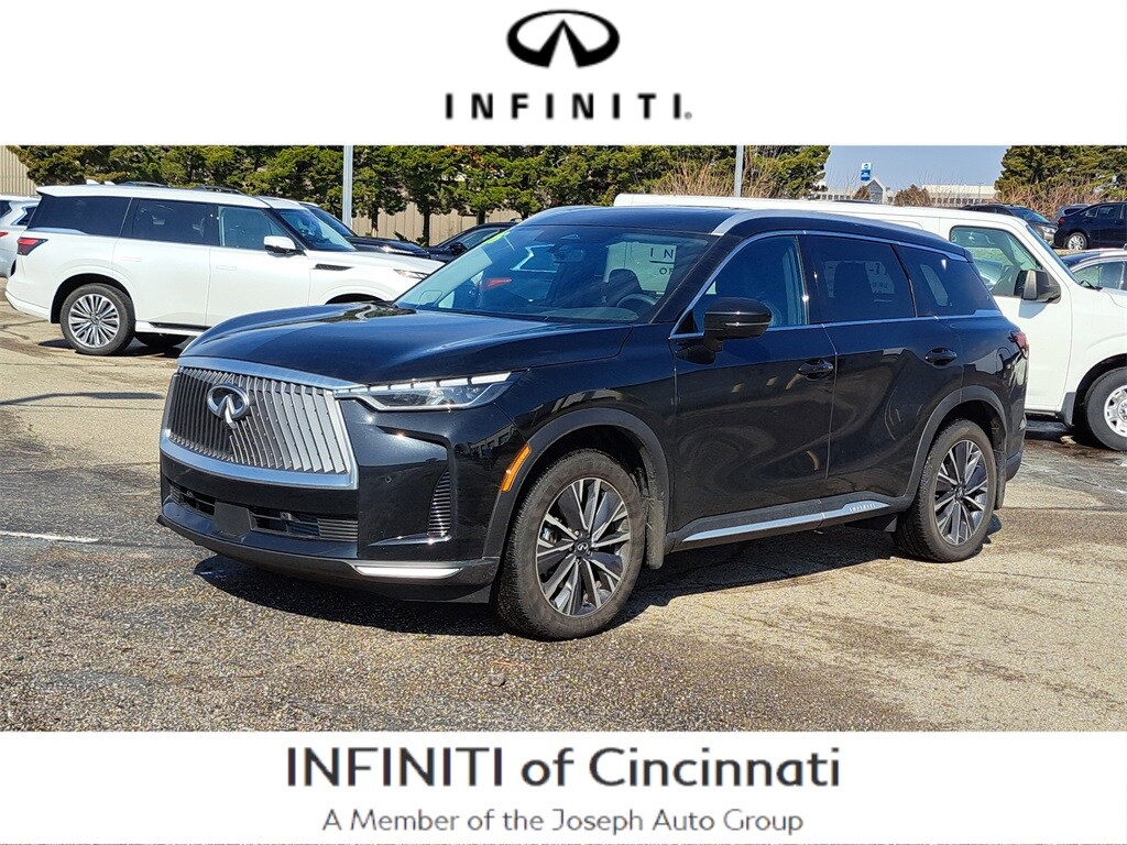 Powered by a 2.0L VC-Turbo engine producing 268 horsepower paired with a smooth 9-speed automatic transmission, this 2026 INFINITI QX60 AWD provides responsive performance along with a quiet and comfortable ride. Finished in Mineral Black with Graphite interior, this new INFINITI QX60 at Infiniti of Cincinnati offers elegant styling and premium craftsmanship throughout the cabin.