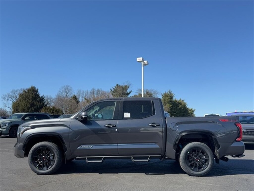Magnetic Gray Metallic 2025 Toyota Tundra Platinum 4WD 10-Speed Automatic 3.4L V6 4WD, Black w/Premium Leather Seat Trim, Multi-Terrain Back Monitor, TRD Off-Road Package, Wheels: 20" TRD Alloy. 17/22 City/Highway MPG
