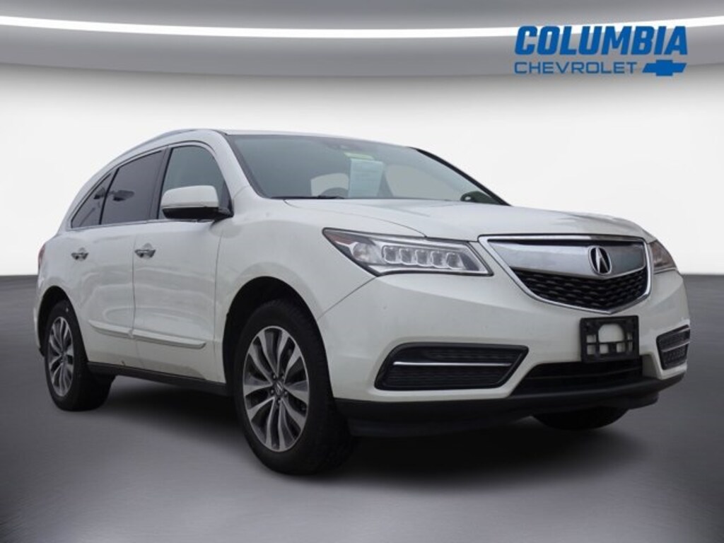 Columbia Chevrolet is pleased to offer this outstanding 2016 Acura MDX 3.5L in White Beautifully equipped with Leather, 10 Speakers, 3rd row seats: split-bench, 4-Wheel Disc Brakes, 4.33 Axle Ratio, ABS brakes, Air Conditioning, Alloy wheels, AM/FM radio: SiriusXM, Anti-whiplash front head restraints, Auto tilt-away steering wheel, Auto-dimming Rear-View mirror, Automatic temperature control, Brake assist, Bumpers: body-color, CD player, Compass, Cruise Control, Delay-off headlights, Driver door bin, Driver vanity mirror, Dual front impact airbags, Dual front side impact airbags, Electronic Stability Control, Exterior Parking Camera Rear, Four wheel independent suspension, Front anti-roll bar, Front Bucket Seats, Front Center Armrest w/Storage, Front dual zone A/C, Front reading lights, Garage door transmitter: HomeLink, Heated door mirrors, Heated front seats, Heated Front Sport Seats, Illuminated entry, Knee airbag, Lane Departure Warning System, Leather-Trimmed Interior, Low tire pressure warning, Memory seat, Navigation System, Occupant sensing airbag, Outside temperature display, Overhead airbag, Overhead console, Panic alarm, Passenger door bin, Passenger vanity mirror, Power door mirrors, Power driver seat, Power Liftgate, Power moonroof, Power passenger seat, Power steering, Power windows, Premium audio system: Acura/ELS Studio, Radio data system, Radio: Acura/ELS Studio Premium Audio System, Rain sensing wipers, Rear air conditioning, Rear anti-roll bar, Rear reading lights, Rear seat center armrest, Rear window defroster, Rear window wiper, Remote keyless entry, Security system, Speed-sensing steering, Speed-Sensitive Wipers, Split folding rear seat, Spoiler, Steering wheel memory, Steering wheel mounted audio controls, Tachometer, Telescoping steering wheel, Tilt steering wheel, Traction control, Trip computer, Turn signal indicator mirrors, Variably intermittent wipers, and Wheels: 19" x 8.0" Machine Finished Aluminum Alloy!