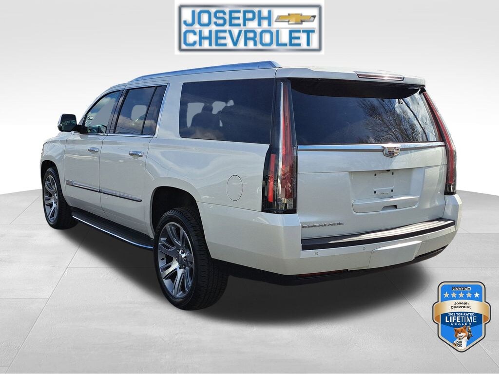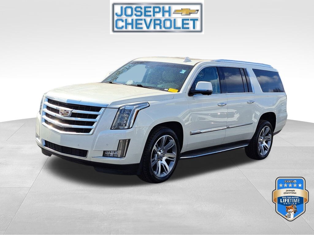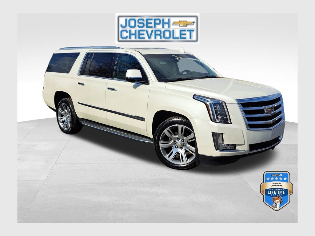 (Joseph Chevrolet) is proud to present you with another True Market Priced Pre-Owned Vehicle. This 2015 Cadillac Escalade ESV Luxury is loaded with the following Factory Options:Driver Awareness Package (Forward Collision Alert and Lane Departure Warning System), Preferred Equipment Group 1SB (IntelliBeam Headlamps, Lane Change Alert, Power Tilt-Sliding Sunroof w/Express-Open/Close, Rear Cross-Traffic Alert, Reconfigurable 4-Color Head-Up Display, Second Row Bucket Seats, and Side Blind Zone Alert), Theft-Deterrent Package (Theft-Deterrent Alarm System, Vehicle Inclination Sensor, and Vehicle Interior Movement Sensor), 16 Speakers, 1st 2nd & 3rd Row Floor Mats (LPO), 22" x 9" 7-Spoke Ultra-Bright Aluminum Wheels, 3.23 Axle Ratio, 3rd Row DVD Screen, 3rd row seats: split-bench, 4-Wheel Disc Brakes, ABS brakes, Adaptive suspension, Adjustable pedals, Air Conditioning, Alloy wheels, AM/FM radio: SiriusXM, Auto High-beam Headlights, Auto tilt-away steering wheel, Auto-dimming door mirrors, Auto-dimming Rear-View mirror, Auto-leveling suspension, Automatic temperature control, Black Front License Plate Bracket, Bodyside moldings, Bose Centerpoint Surround Sound System, Brake assist, Bumpers: body-color, Cargo Mat, CD player, Chrome Exhaust Tip, Compass, Delay-off headlights, Driver door bin, Driver vanity mirror, Dual front impact airbags, Dual front side impact airbags, DVD-Audio, Electronic Stability Control, Emergency communication system: OnStar Directions & Connections, Exterior Parking Camera Rear, Front anti-roll bar, Front Bucket Seats, Front Center Armrest w/Storage, Front dual zone A/C, Front reading lights, Front wheel independent suspension, Fully automatic headlights, Garage door transmitter, Heads-Up Display, Heated & Cooled Front Bucket Seats, Heated door mirrors, Heated front seats, Heated rear seats, Heated steering wheel, Illuminated entry, Leather Seating Surfaces, Leather Shift Knob, Leather steering wheel, Low tire pressure warning, Magnetic Ride Control Suspension, Memory seat, Navigation System, NavTraffic, Occupant sensing airbag, Outside temperature display, Overhead airbag, Overhead console, Panic alarm, Passenger door bin, Passenger vanity mirror, Pedal memory, Power door mirrors, Power driver seat, Power Liftgate, Power moonroof, Power passenger seat, Power steering, Power windows, Radio data system, Radio: Cadillac CUE Info/Media Ctrl Sys w/Embd Nav, Rain sensing wipers, Rear air conditioning, Rear anti-roll bar, Rear audio controls, Rear reading lights, Rear Seat Entertainment System, Rear window defroster, Rear window wiper, Remote keyless entry, Roof rack: rails only, Security system, Single Slot CD/MP3 Player, SiriusXM Satellite Audio System, Speed control, Split folding rear seat, Spoiler, Steering wheel memory, Steering wheel mounted audio controls, Tachometer, Telescoping steering wheel, Tilt steering wheel, Traction control, Trip computer, Turn signal indicator mirrors, Variably intermittent wipers, Ventilated front seats, and Wheels: 22" x 9" 7-Spoke Aluminum. CARFAX One-Owner.