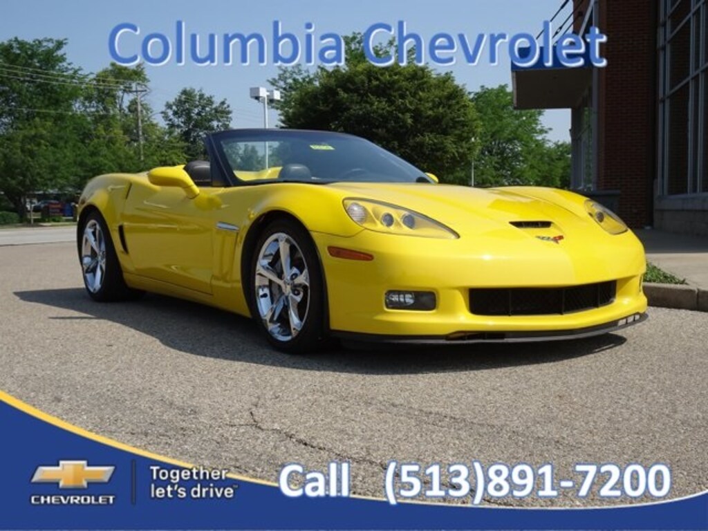 Columbia Chevrolet is honored to offer this wonderful 2011 Chevrolet Corvette Grand Sport in Velocity Yellow Tintcoat Beautifully equipped with Custom Leather Wrapped Interior Package (Custom Two-Tone Leather Wrapped Seating Surfaces, Headrest Crossed Flag Embroidery, and Leather-Wrapped Upper Instrument Panel), Grand Sport Heritage Package, Memory Package, Preferred Equipment Group 4LT (6-Way Power Front Passenger Seat Adjuster, Bluetooth® For Phone, Driver & Front Passenger Heated Seats, Front Sport Bucket Seats, Head-Up Display, Manual Tilt/Power Telescopic Steering Column, Power Folding Convertible Top, Power Lumbar/Bolster Seat Adjusters, Rear Compartment Area Cargo Net, Universal Home Remote, and XM Radio), 18" x 9.5" Fr & 19" x 12" Rr Chrome Alum. Wheels, 18" x 9.5" Front & 19" x 12" Rear Painted Aluminum Wheels, 4-Wheel Disc Brakes, 7 Speakers, ABS brakes, Air Conditioning, Alloy wheels, AM/FM radio: XM, AM/FM Stereo w/CD Player/Navigation, Auto-dimming door mirrors, Auto-dimming Rear-View mirror, Automatic temperature control, Bumpers: body-color, CD player, Compass, Convertible roof lining, Cruise Control, Delay-off headlights, Driver door bin, Driver vanity mirror, Dual front impact airbags, Dual front side impact airbags, Dual Mode Performance Exhaust, Electronic Stability Control, Emergency communication system: OnStar Directions & Connections, Four wheel independent suspension, Front anti-roll bar, Front Bucket Seats, Front Center Armrest, Front dual zone A/C, Front fog lights, Front reading lights, Fully automatic headlights, Glass rear window, Heated door mirrors, High-Intensity Discharge Headlights, Illuminated entry, Leather Seating Surfaces, Leather Shift Knob, Leather steering wheel, Light Silver Metallic Fender Stripe, Low tire pressure warning, Magnetic Selective Ride Control, Occupant sensing airbag, Outside temperature display, Panic alarm, Passenger door bin, Passenger vanity mirror, Power door mirrors, Power driver seat, Power steering, Power windows, Radio data system, Rear anti-roll bar, Rear window defroster, Remote keyless entry, Security system, Speed-sensing steering, Spoiler, Sport steering wheel, Steering wheel mounted audio controls, Tachometer, Tilt steering wheel, Traction control, Trip computer, Variably intermittent wipers, and Voltmeter!