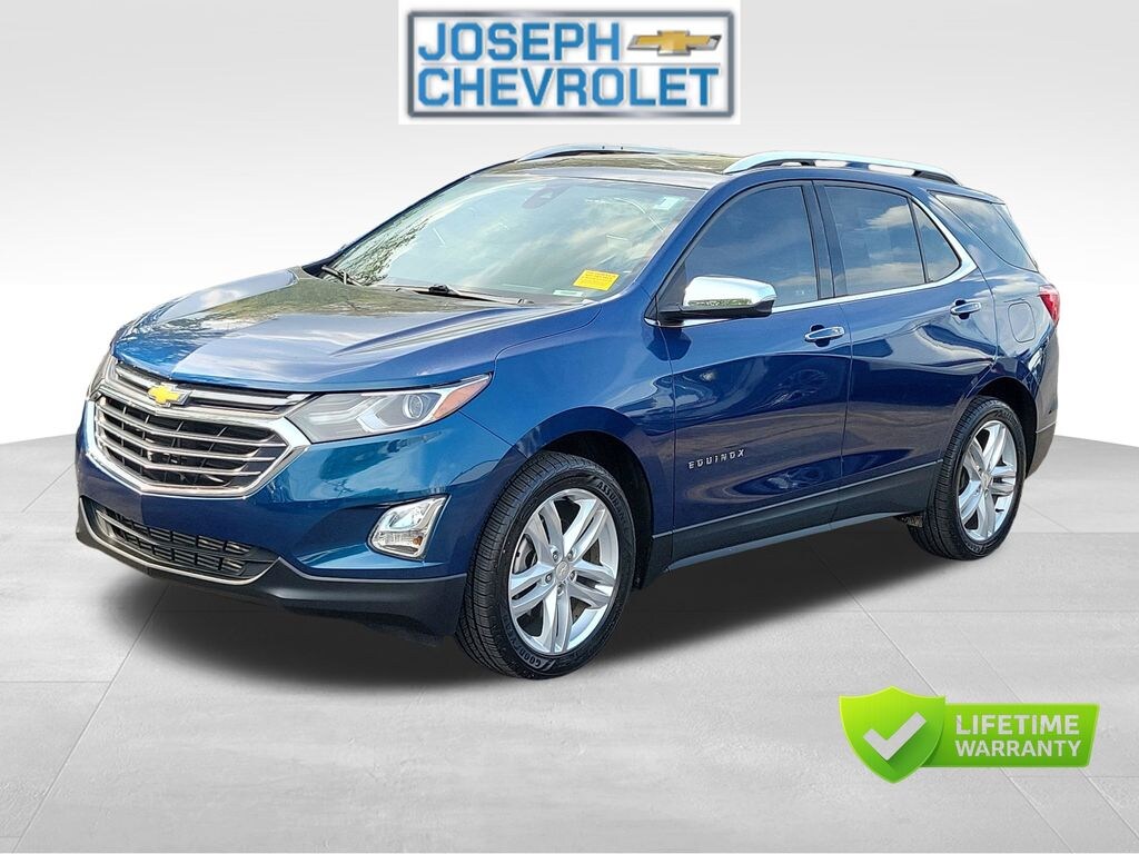 (Joseph Chevrolet) is proud to present you with another True Market Priced Pre-Owned Vehicle. This 2019 Chevrolet Equinox Premier is loaded with the following Factory Options:Confidence & Convenience II Package, Driver Confidence II Package (Adaptive Cruise Control - Camera, Following Distance Indicator, Forward Collision Alert, Front Pedestrian Braking, HD Surround Vision, IntelliBeam Auto High Beam Headlamp Control, Lane Keep Assist w/Lane Departure Warning, Low Speed Forward Automatic Braking, and Safety Alert Seat), Driver Convenience II Package (8-Way Power Front Passenger Seat Adjuster, Heated Rear Seats, Heated Steering Wheel, Ventilated Driver Seat, and Ventilated Front Passenger Seat), Preferred Equipment Group 2LZ (4-Wheel Antilock 4-Wheel Disc Brakes, Body-Color Trailer Hitch Close-Out Cover, Dual Stainless-Steel Exhaust w/Bright Tips, and Factory Installed Trailer Hitch), Trailering Equipment, 2 Rear USB Charging-Only Ports, 2 USB Data Ports, 2 USB Data Ports w/SD Card Reader, 2-Way Power Driver Lumbar Control Seat Adjuster, 3.17 Final Drive Axle Ratio, 4-Wheel Disc Brakes, 6 Speaker Audio System Feature, 6 Speakers, 8-Way Power Driver Seat Adjuster, ABS brakes, Air Conditioning, Alloy wheels, AM/FM radio: SiriusXM, Apple CarPlay/Android Auto, Auto-dimming door mirrors, Auto-dimming Rear-View mirror, Automatic temperature control, Bluetooth® For Phone, Brake assist, Bumpers: body-color, Compass, Delay-off headlights, Driver door bin, Driver vanity mirror, Dual front impact airbags, Dual front side impact airbags, Electronic Stability Control, Emergency communication system: OnStar and Chevrolet connected services capable, Four wheel independent suspension, Front anti-roll bar, Front Bucket Seats, Front Center Armrest, Front dual zone A/C, Front fog lights, Front Passenger 4-Way Manual Seat Adjuster, Front reading lights, Fully automatic headlights, Garage door transmitter, Heated door mirrors, Heated Driver & Front Passenger Seats, Heated front seats, Illuminated entry, Leather Shift Knob, Low tire pressure warning, Memory seat, Occupant sensing airbag, Outside temperature display, Overhead airbag, Overhead console, Panic alarm, Passenger door bin, Passenger vanity mirror, Perforated Leather-Appointed Seat Trim, Power door mirrors, Power driver seat, Power Liftgate, Power steering, Power windows, Premium audio system: Chevrolet MyLink, Radio data system, Radio: Chevrolet Infotainment 3 Plus System, Rear anti-roll bar, Rear reading lights, Rear seat center armrest, Rear window defroster, Rear window wiper, Remote keyless entry, Roof rack: rails only, Security system, SiriusXM Radio, Speed control, Speed-sensing steering, Split folding rear seat, Spoiler, Steering wheel mounted audio controls, Tachometer, Telescoping steering wheel, Tilt steering wheel, Traction control, Trip computer, Turn signal indicator mirrors, Variably intermittent wipers, and Wheels: 19" Bright Machined.