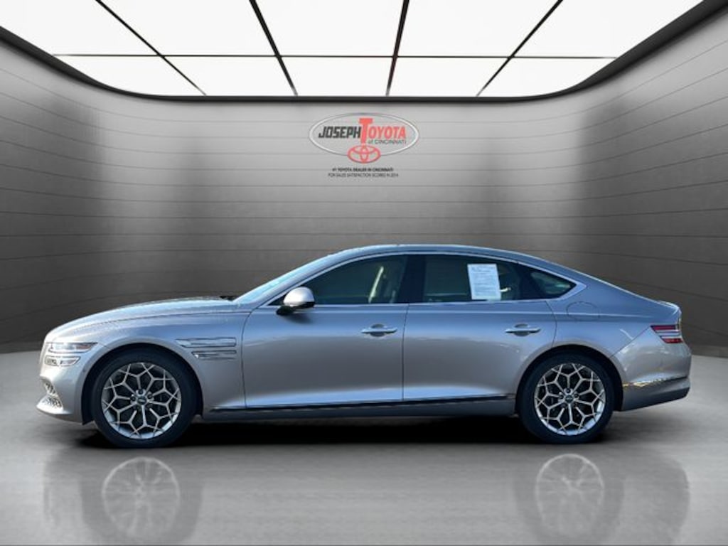 CARFAX One-Owner. Clean CARFAX. Silver 2022 Genesis G80 2.5T AWD 8-Speed Automatic 2.5L DOHC AWD, Apple Car Play, 4D Sedan, AWD, Silver, Advanced Package, Exterior Parking Camera Rear, Heated Front Bucket Seats, Heated front seats, Leatherette Seating Surfaces, Memory seat, Navigation System, Option Group 02, Option Group 03, Panoramic Roof, Power passenger seat, Prestige Package, Ventilated Front Seats.