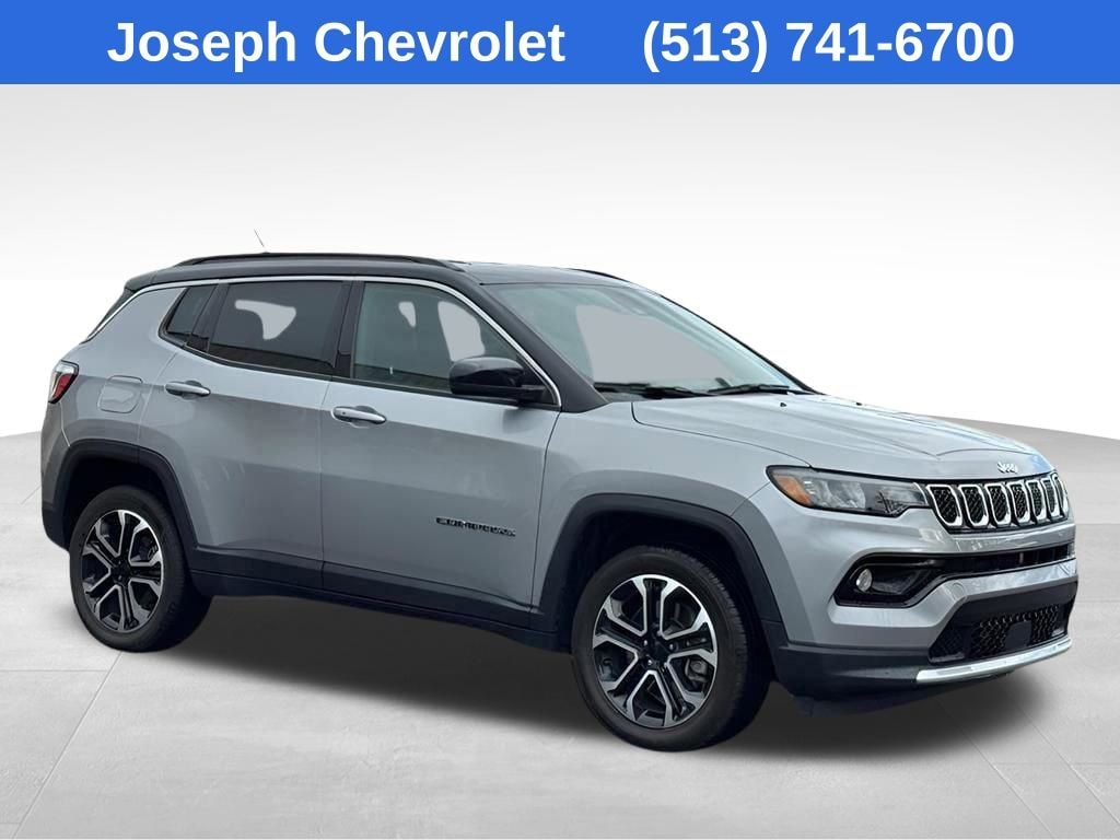 (Joseph Chevrolet) is proud to present you with another True Market Priced Pre-Owned Vehicle. This 2023 Jeep Compass Limited is loaded with the following Factory Options:Quick Order Package 29G, 10.1" Touchscreen Display, 3.73 Final Drive Ratio, 4-Wheel Disc Brakes, 6 Speakers, ABS brakes, Air Conditioning, Alloy wheels, AM/FM radio: SiriusXM, Auto High-beam Headlights, Auto-dimming Rear-View mirror, Automatic temperature control, Brake assist, Bumpers: body-color, Compass, Delay-off headlights, Disassociated Touchscreen Display, Driver door bin, Driver vanity mirror, Dual front impact airbags, Dual front side impact airbags, Electronic Stability Control, Four wheel independent suspension, Front anti-roll bar, Front Bucket Seats, Front Center Armrest w/Storage, Front dual zone A/C, Front fog lights, Front License Plate Bracket, Front reading lights, Fully automatic headlights, Heated door mirrors, Heated front seats, Heated steering wheel, Hidden Exhaust Tips-Dual, Illuminated entry, Knee airbag, Leather Shift Knob, Leatherette Seats, Low tire pressure warning, Occupant sensing airbag, Outside temperature display, Overhead airbag, Overhead console, Panic alarm, ParkView Rear Back-Up Camera, Passenger door bin, Passenger vanity mirror, Power door mirrors, Power driver seat, Power steering, Power windows, Radio: Uconnect 5 w/10.1" Display, Rain sensing wipers, Rear anti-roll bar, Rear seat center armrest, Rear window defroster, Rear window wiper, Remote keyless entry, Security system, SiriusXM Radio Service, Speed control, Split folding rear seat, Spoiler, Steering wheel mounted audio controls, Tachometer, Telescoping steering wheel, Tilt steering wheel, Traction control, Trip computer, Turn signal indicator mirrors, Variably intermittent wipers, and Wheels: 18" x 7" Painted Diamond Cut Aluminum. CARFAX One-Owner. Clean CARFAX.