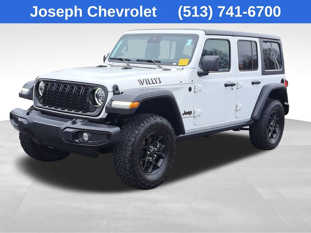 (Joseph Chevrolet) is proud to present you with another True Market Priced Pre-Owned Vehicle. This 2024 Jeep Wrangler Willys is loaded with the following Factory Options:Convenience Group (2-Door Passive Entry, Front Door Locks, Air Conditioning w/Auto Temperature Control, Air Filtering, Cluster 7.0" TFT Color Display, Emergency/Assistance Call, Heated Front Seats, Heated Steering Wheel, Remote Start System, and Universal Garage Door Opener), Quick Order Package 22W Willys (240 Amp Alternator, 4-Wheel Drive Swing Gate Decal, 7 & 4 Pin Wiring Harness, 97 MPH Vehicle Max Speed Calibration, Advanced Brake Assist, Automatic Headlamps, Auxiliary Switches, Black Grille, Class II Receiver Hitch, Conventional Differential Front Axle, Corning Gorilla Glass, Dana M210 Wide HD Tube Front Axle, Dana M220 Wide Rear Axle, Daytime Running Lamps LED Accents, Deep Tint Sunscreen Windows, E-Locker Rear Axle, Enhanced Adaptive Cruise Control, Front 1-Touch Down Power Windows, Front LED Fog Lamps, Full Speed Forward Collision Warning Plus, Injection Molded Black Rear Bumper, LED Premium Reflector Headlamps, Mold In Color Bumper w/Gloss Black, Molded in Color Rubicon Highline Flare, MOPAR All-Weather Floor Mats, Off-Road Plus Mode, Power Heated Mirrors, Premium Wrapped Steering Wheel, Remote Keyless Entry, Security Alarm, Speed Sensitive Power Locks, Sun Visors w/Illuminated Vanity Mirrors, Wheels: 17" x 7.5" Painted Black, Willy's Suspension, Willys, and Willys Hood Decal), Quick Order Package 23W Willys, 110 MPH Vehicle Max Speed Calibration, 4-Wheel Disc Brakes, 8 Speakers, ABS brakes, Air Conditioning, AM/FM radio, Apple CarPlay/Android Auto, Aux Battery, Black 3-Piece Hard Top, Brake assist, Cloth Low-Back Bucket Seats, Compass, Delay-off headlights, Driver door bin, Driver vanity mirror, Dual front impact airbags, Dual front side impact airbags, Electronic Stability Control, Freedom Panel Storage Bag, Front anti-roll bar, Front Bucket Seats, Front Center Armrest w/Storage, Front fog lights, Front reading lights, Integrated roll-over protection, Low tire pressure warning, No Soft Top, Non-Lock Fuel Cap w/o Discriminator, Normal Duty Suspension, Occupant sensing airbag, Outside temperature display, Overhead airbag, ParkView Rear Back-Up Camera, Passenger door bin, Passenger vanity mirror, Power steering, Radio data system, Radio: Uconnect 5 w/12.3" Display, Rear anti-roll bar, Rear reading lights, Rear Window Defroster, Rear Window Wiper/Washer, Speed control, Split folding rear seat, Steering wheel mounted audio controls, Stop-Start Dual Battery System, Tachometer, Telescoping steering wheel, Tilt steering wheel, Traction control, Trip computer, Variably intermittent wipers, and Wheels: 17" x 7.5" Black Steel Styled. CARFAX One-Owner.