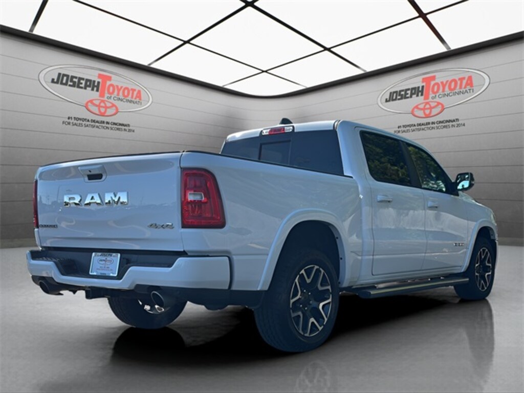 CARFAX One-Owner. Clean CARFAX. Bright White Clearcoat 2025 Ram 1500 Laramie 4WD 8-Speed Automatic 3.0L I6 Accent Color Premium Power Mirrors, Auto Power-Folding Mirrors, Auto-Dimming Exterior Driver Mirror, Bed Utility Group, Black Interior Accents, Black Painted Exterior Mirrors Caps, Body Color Front Bumper, Body Color Rear Bumper w/Step Pads, Bridgestone Brand Tires, Convex Wide-Angle Exterior Mirror Insert, Dome Dual LED Reading Lamp, Dual-Pane Panoramic Sunroof, Exterior Mirrors Courtesy Lamps, Exterior Mirrors w/Heating Element, Exterior Mirrors w/Memory, Exterior Mirrors w/Supplemental Signals, Grille Surround 3 Body Color Tex 2 Black, Laramie Level 1 Equipment Group, Leather Trimmed Bucket Seats, LED Dome/Reading Lamp, MOPAR 4 Adjustable Cargo Tie-Down Hooks, MOPAR Spray In Bedliner, Quick Order Package 21H Laramie, Rain Sensitive Windshield Wipers, RAM Grille Badge - Chrome, Remote Tailgate Release, Sport Appearance Package, Sport Performance Hood.